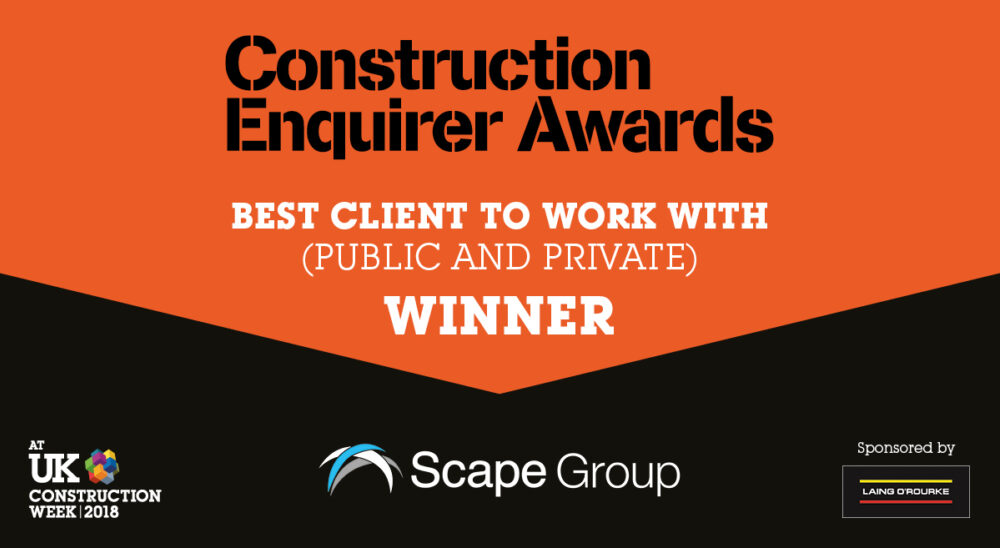 We were shortlisted in the ‘Best Client to Work With (Public and Private)’ category, alongside strong competitors such as Argent, Highways England and North West Construction Hub and are very proud to have won this award in 2016, 2017 and now in 2018.